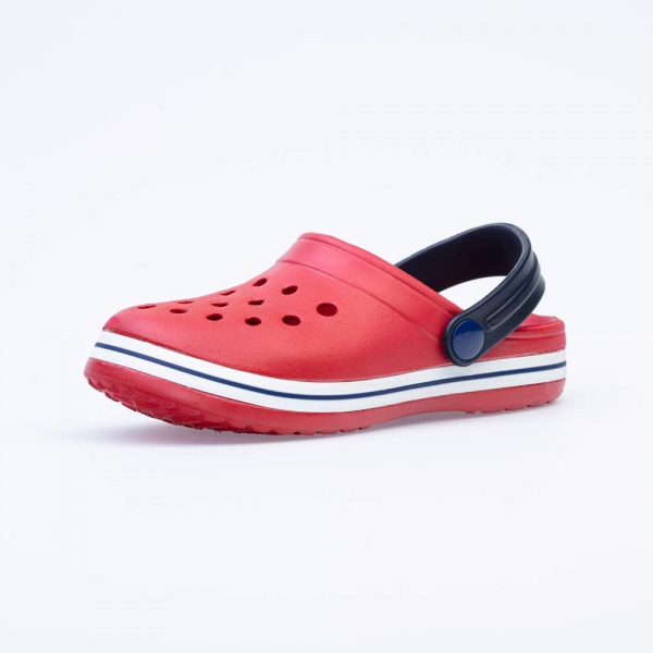 Лёгкие и удобные пляжные сабо для мальчика Обувь полностью выполнена из материала ЭВА (этиленвинилацетата) - очень лёгкого, гибкого, эластичного и амортизирующего. Он быстро сохнет и его легко мыть. Закрытый носок защищает пальцы от горячего песка и камней, при этом перфорация позволяет стопе \'дышать\'. Перекидной ремешок надежно фиксирует обувь на ноге. Пляжные сабо можно украсить стильными декоративными элементами, которые приобретаются отдельно. Внутренняя анатомическая форма модели повторяет форму стопы. Сделано в России.